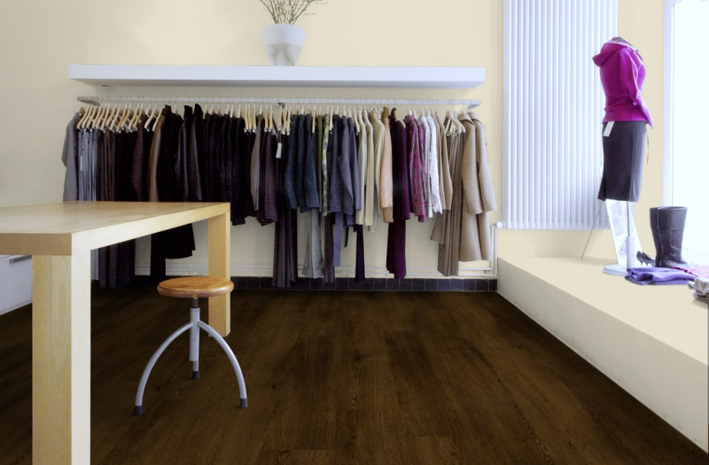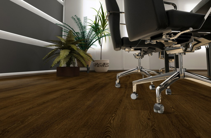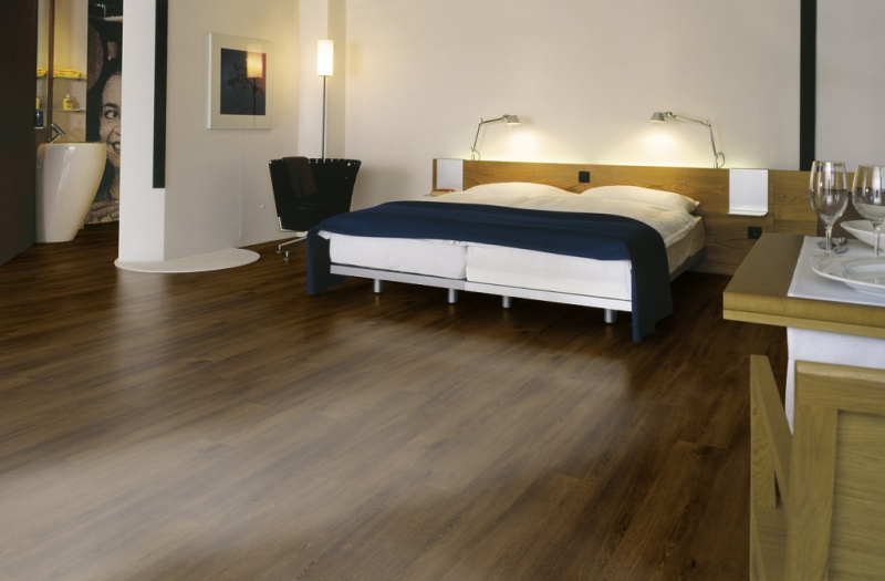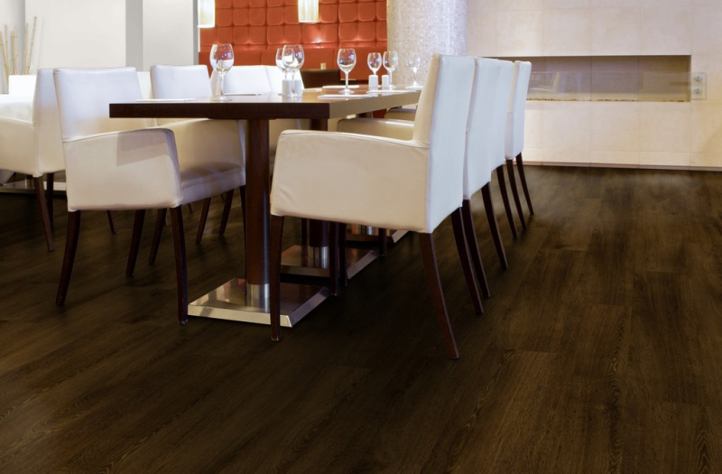 Ламинат Kronostar Eco-Tec Дуб Кофеный. Цвет - темно-коричневый. Класс нагрузки 32. Толщина панели 7 мм. Глубокое тиснение ламината Дуб Кофейный в полной мере имитирует натуральность дерева. Код декора - 2081.