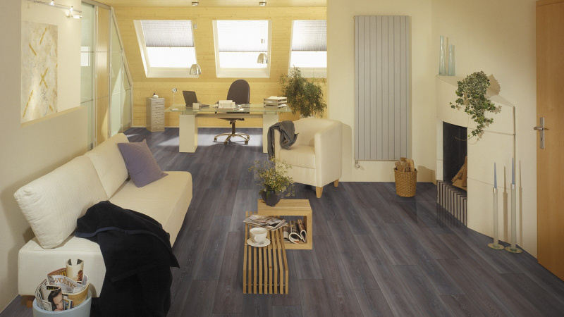 Ламинат Kronotex Exquisit Дуб Стирлинг. 32 класс нагрузки. Цвет - серый. Толщина панелей - 8 мм. Синхронизированный, тисненный рельефный рисунок, а также фаска по четырем сторонам создают полное ощущение ходьбы по натуральному массиву дерева. Матовый блеск и текстурный рисунок создают теплую и уютную атмосферу в помещении. Система 5G-Сlic обеспечивает прочное соединение и быструю укладку. Класс износостойкости АС4 и класс нагрузки 32 позволяют использовать ламинат как в жилых, так и коммерческих помещениях с умеренной эксплуатационной нагрузкой. Код декора - 2804.