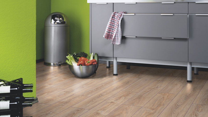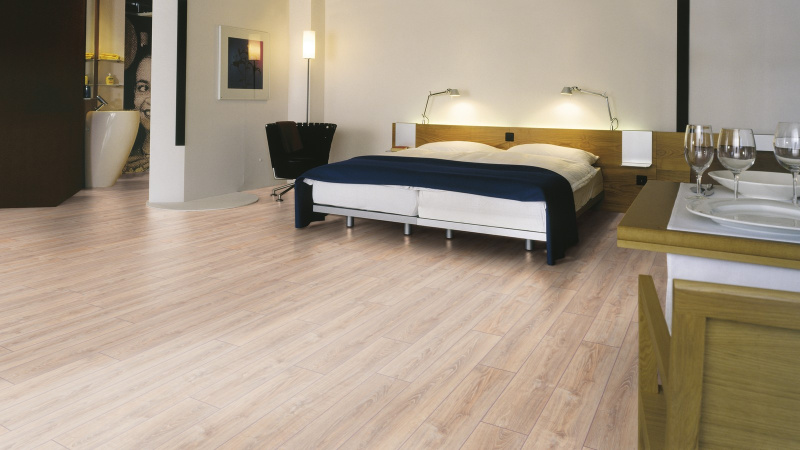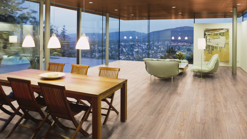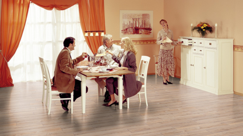 Ламинат Kronotex Exquisit Дуб Ретушированный. Цвет - бежевый (желтый). Класс нагрузки 32 и толщина панели 8 мм обеспечивают долговечность и стойкость к истиранию напольному покрытию, что позволяет его использовать в жилых и административных помещениях со средней степенью нагрузки. Четырехсторонняя V-образная фаска ламината, абсолютно точная имитация рельефа натуральной древесины дают дополнительные возможности в создании уникального и уютного дизайна помещения. Замок 5G-clic обеспечивает надежное соединение, а также облегчает укладку пола. Код декора - 2987.