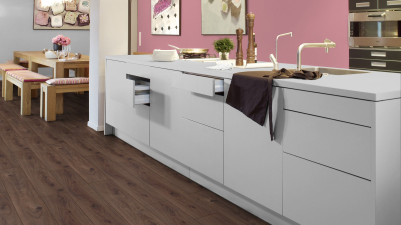 Цвет Темно-коричневый/Черный Коллекция Exquisit Класс нагрузки 32 Толщина 8 мм Имитация материала Дерево Тип рисунка Однополосный Размер доски 1380 x 193 мм Фаска По четырем сторонам -