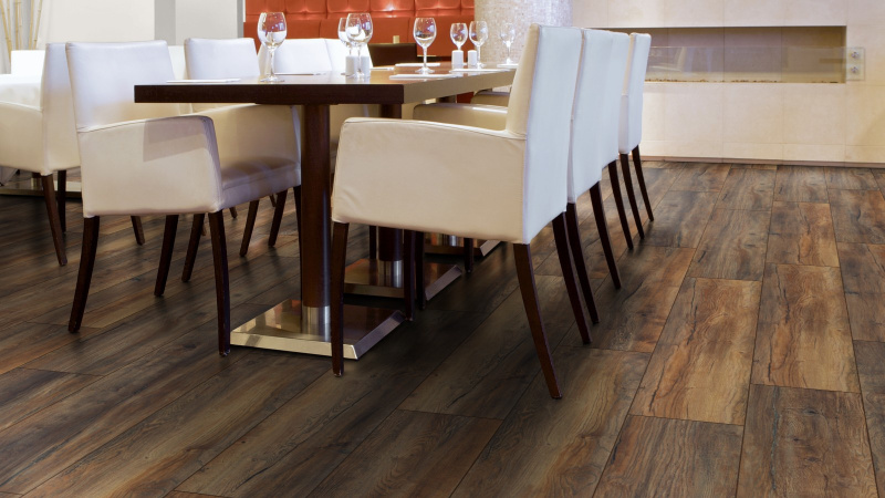 Ламинат Kronotex Exquisit Plus Широкий Дуб Портовый. 32 класс нагрузки. Цвет - темно-коричневый. Толщина панелей - 8 мм. Матовый блеск, особая структура поверхности, повторяющая естественную структуру дерева полностью имитируют дощатый деревянный пол темно-коричневого оттенка. V-образная фаска по четырем сторонам, а также широкие доски 244 мм позволяют создать уникальный и элегантный интерьер для больших помещений. Класс износостойкости АС4 и класс нагрузки 32 позволяют использовать ламинат как в жилых, так и коммерческих помещениях со средней степенью нагрузки. Код декора - 3570.