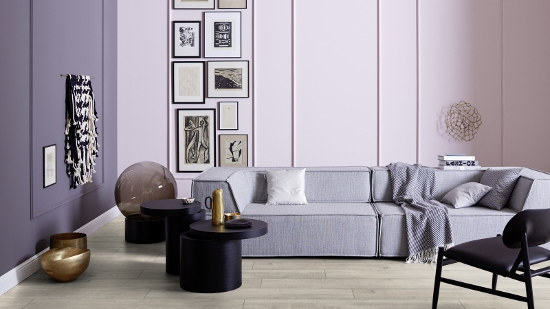 Ламинат Kronotex Exquisit Plus Дуб Гала Белый. 32 класс нагрузки. Цвет - светлый. Толщина панелей - 8 мм. Матовый блеск, реалистичное тиснение, повторяющее естественную структуру дерева создают ощущение дощатого деревянного пола светло-серого оттенка. Фаска по четырем сторонам, а также широкие доски 244 мм позволяют создать уникальный и элегантный интерьер помещениям с большой площадью. Класс износостойкости АС4 и класс нагрузки 32 позволяют использовать напольное покрытие в жилых и коммерческих помещениях со средней степенью нагрузки. Код декора - 4787.